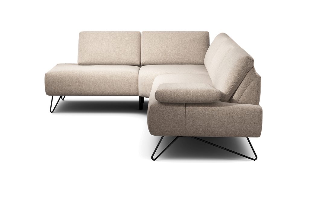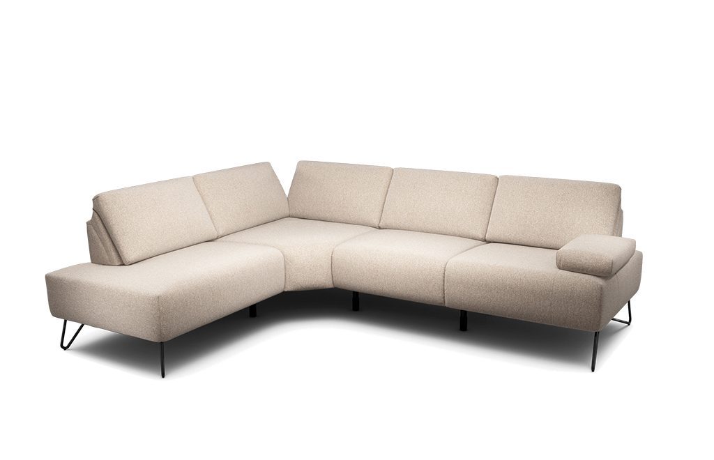 Le canapé d'angle Sensoo Cosy2 est un canapé modulaire fonctionnel avec dossier et appuie-tête réglables, hauteur d'assise adaptable et dureté d'assise réglable. Le petit canapé mesure de 248 cm à 262 cm de large et convient parfaitement dans les pièces modernes ou comme canapé haut de gamme dans les intérieurs de bon goût.
