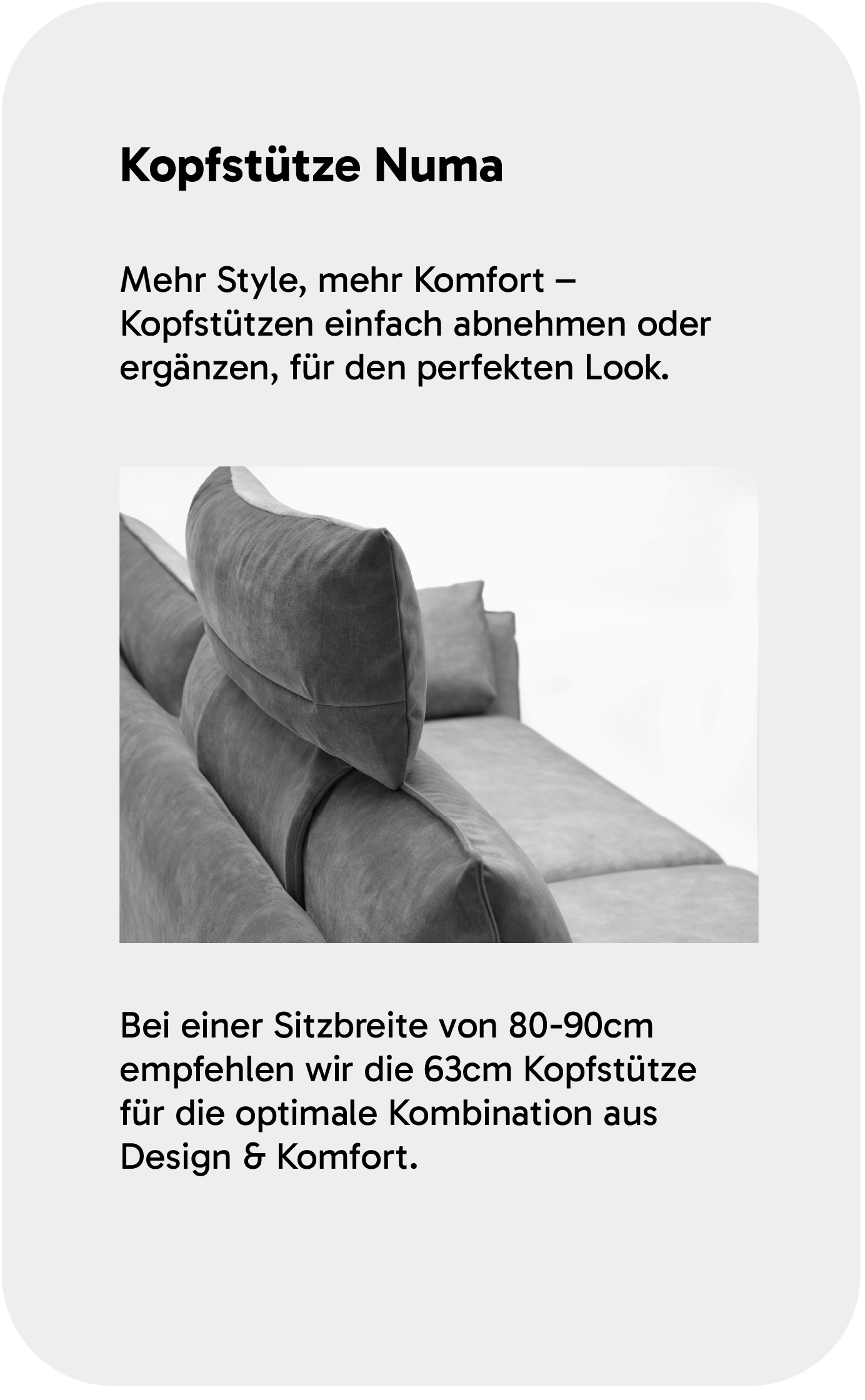 Unsere Sofas bieten Dir die perfekte Balance aus Design und Funktionalität: Mit abnehmbaren oder hochstellbaren Kopfstützen entscheidest Du selbst, ob Du den schlanken, modernen Look bevorzugst oder zusätzlichen Komfort beim Sitzen genießen möchtest. Dank der Glider-Funktion mit Sitztiefenverstellung kannst Du Dich außerdem jederzeit flexibel anlehnen und Deine persönliche Wohlfühlposition finden.