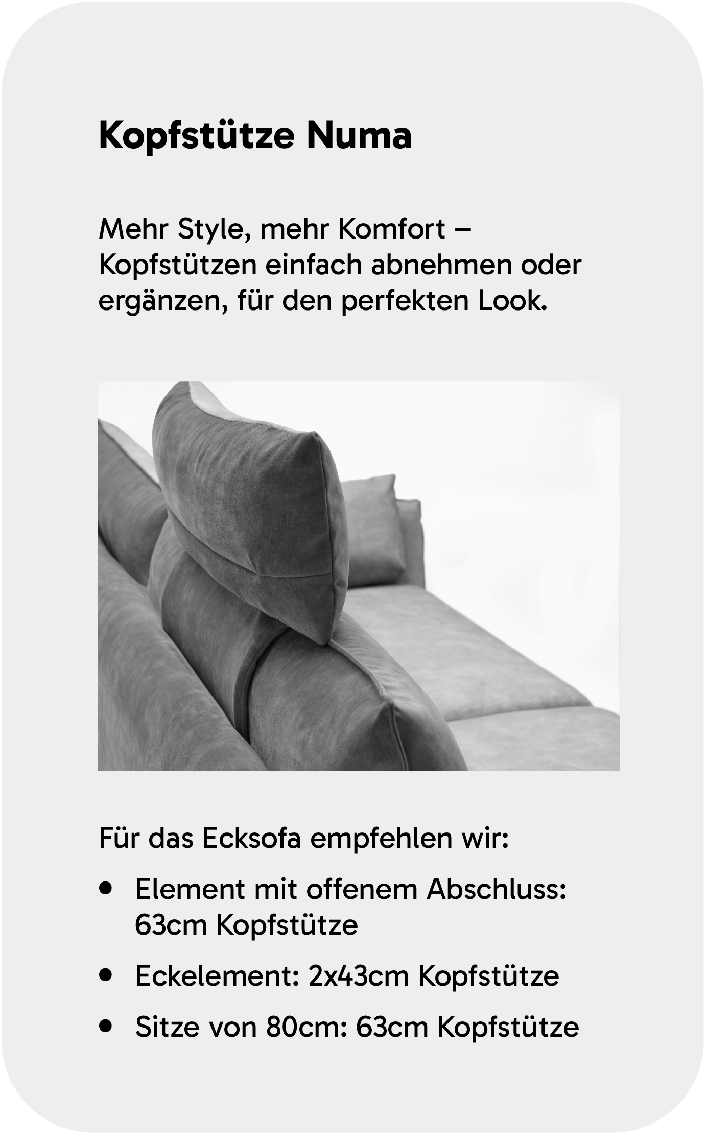 Unsere Sofas bieten Dir die perfekte Balance aus Design und Funktionalität: Mit abnehmbaren oder hochstellbaren Kopfstützen entscheidest Du selbst, ob Du den schlanken, modernen Look bevorzugst oder zusätzlichen Komfort beim Sitzen genießen möchtest. Dank der Glider-Funktion mit Sitztiefenverstellung kannst Du Dich außerdem jederzeit flexibel anlehnen und Deine persönliche Wohlfühlposition finden.