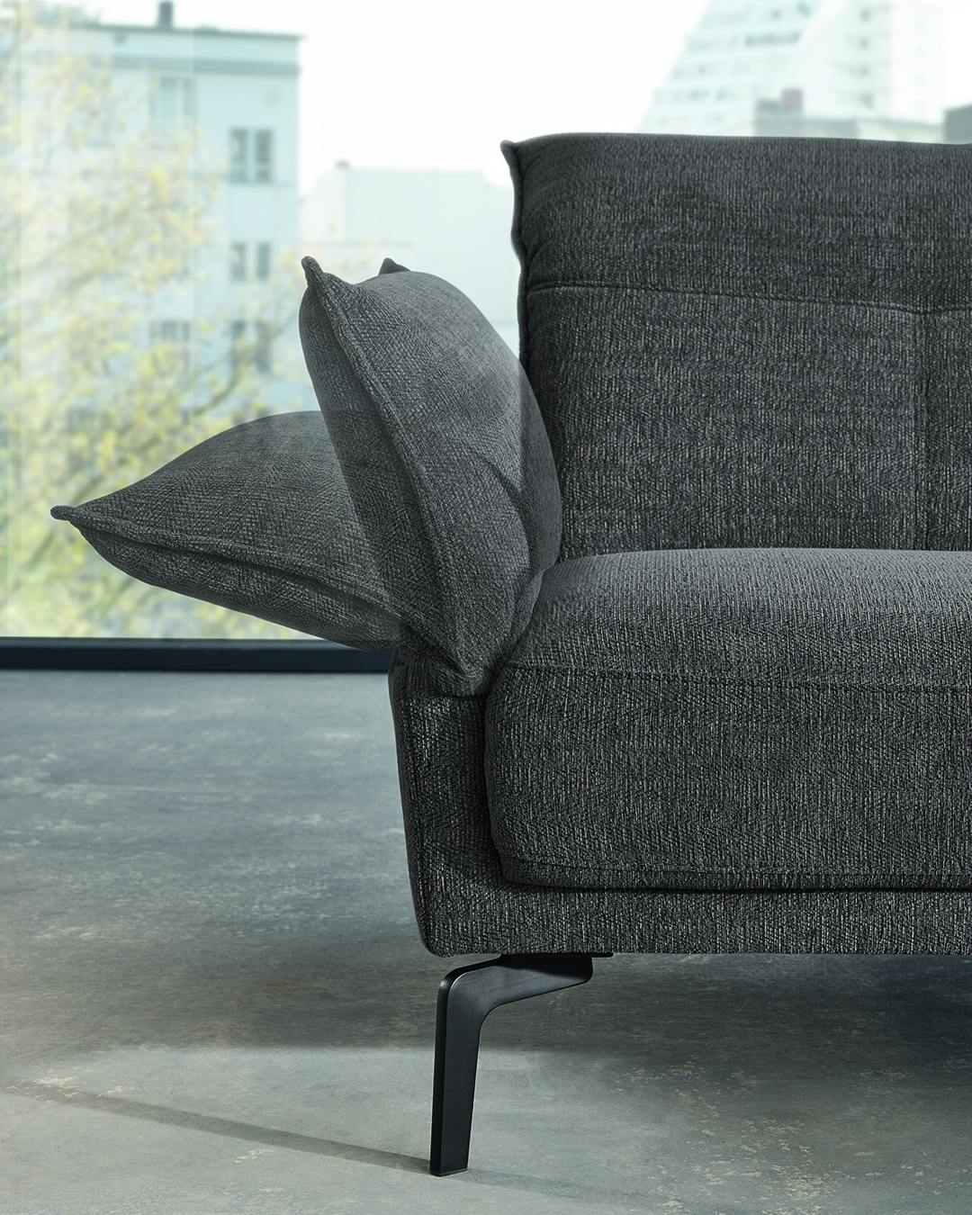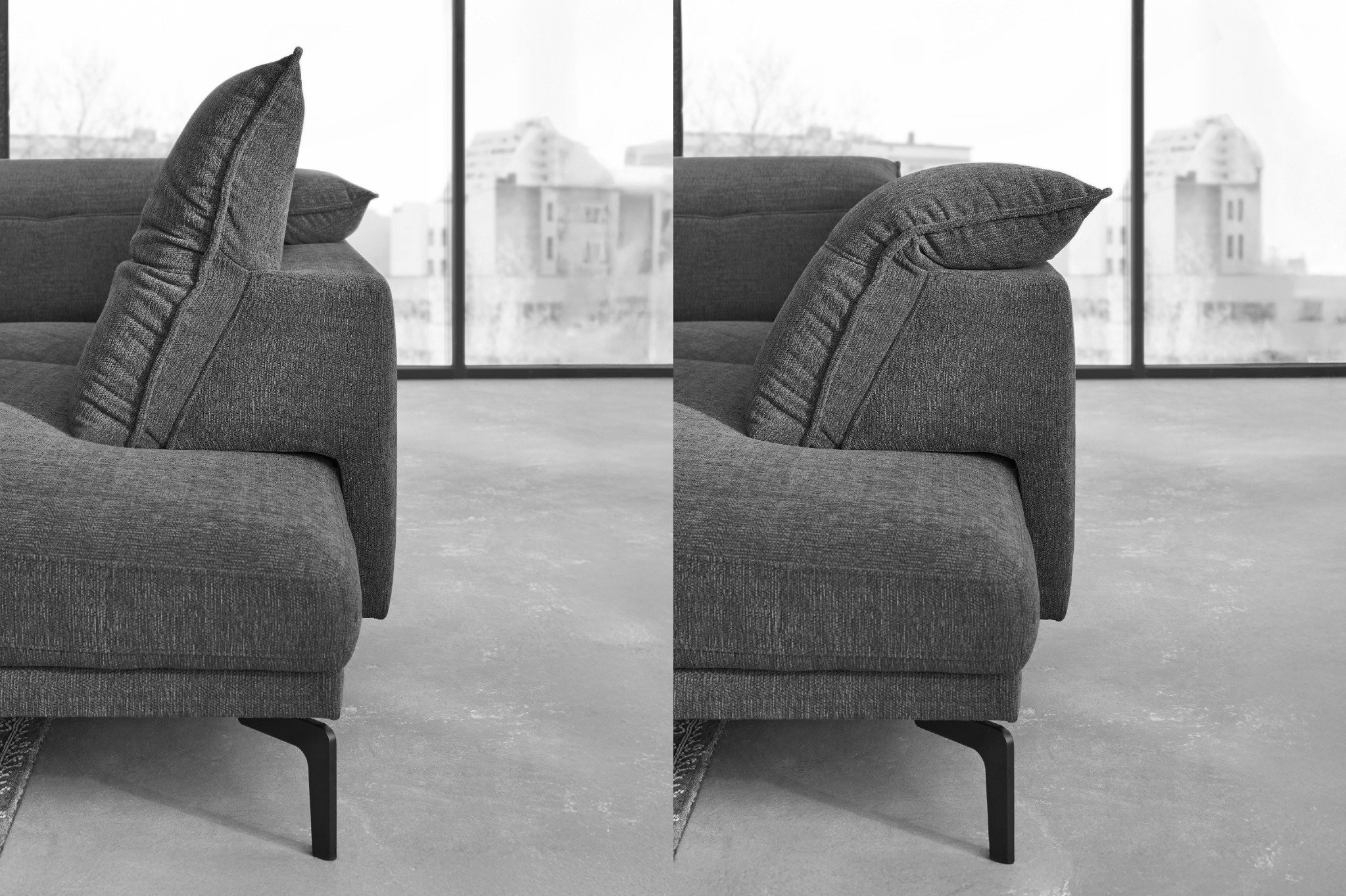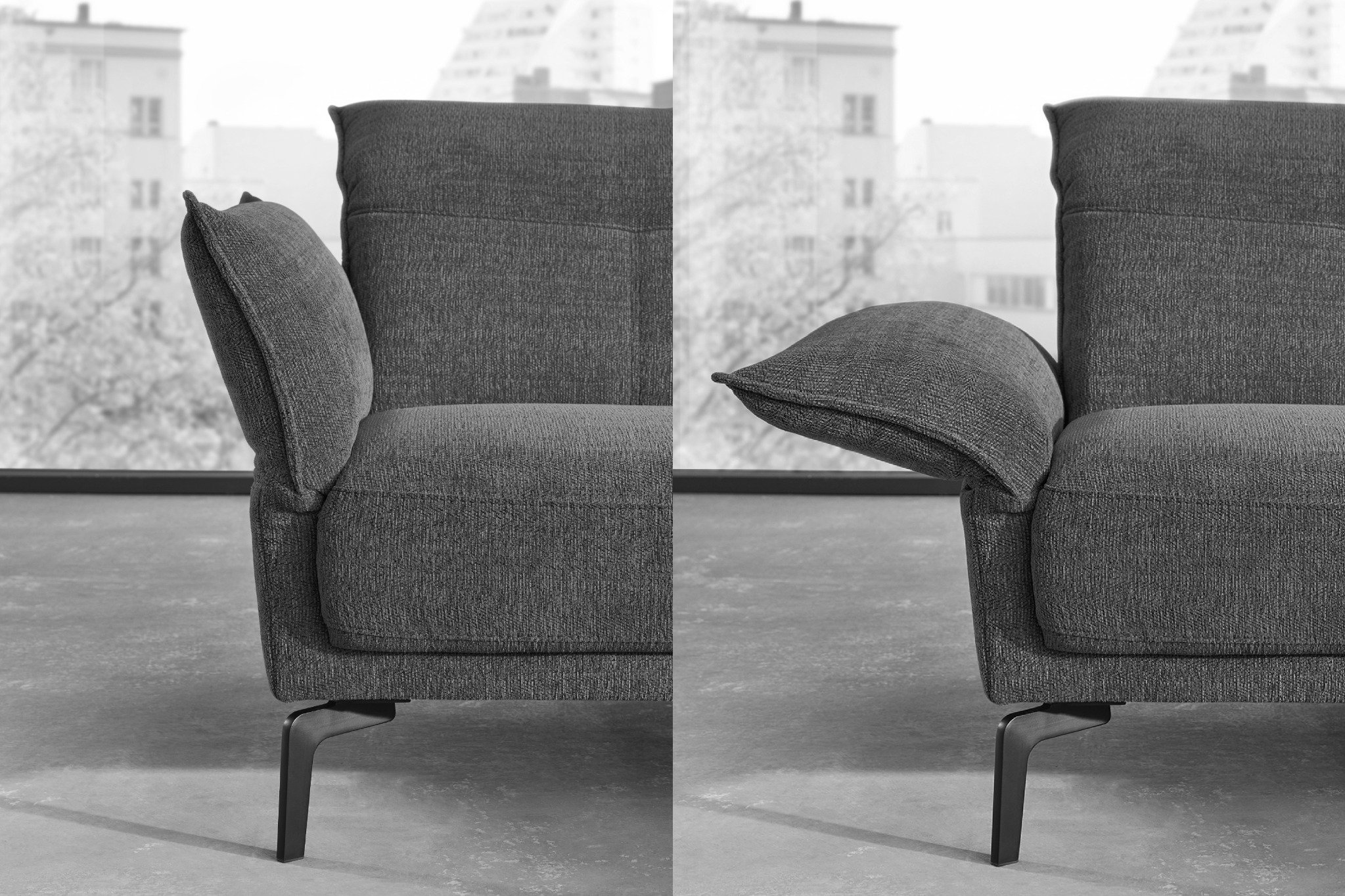 Unsere Sofas bieten Dir die perfekte Balance aus Design und Funktionalität: Mit abnehmbaren oder hochstellbaren Kopfstützen entscheidest Du selbst, ob Du den schlanken, modernen Look bevorzugst oder zusätzlichen Komfort beim Sitzen genießen möchtest. Dank der Glider-Funktion mit Sitztiefenverstellung kannst Du Dich außerdem jederzeit flexibel anlehnen und Deine persönliche Wohlfühlposition finden.