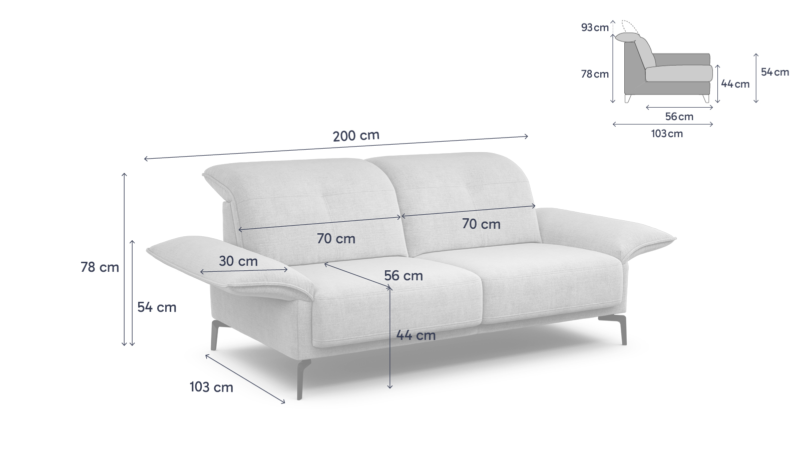 - Gesamtbreite (ausgeklappte Armlehne): 200 cm